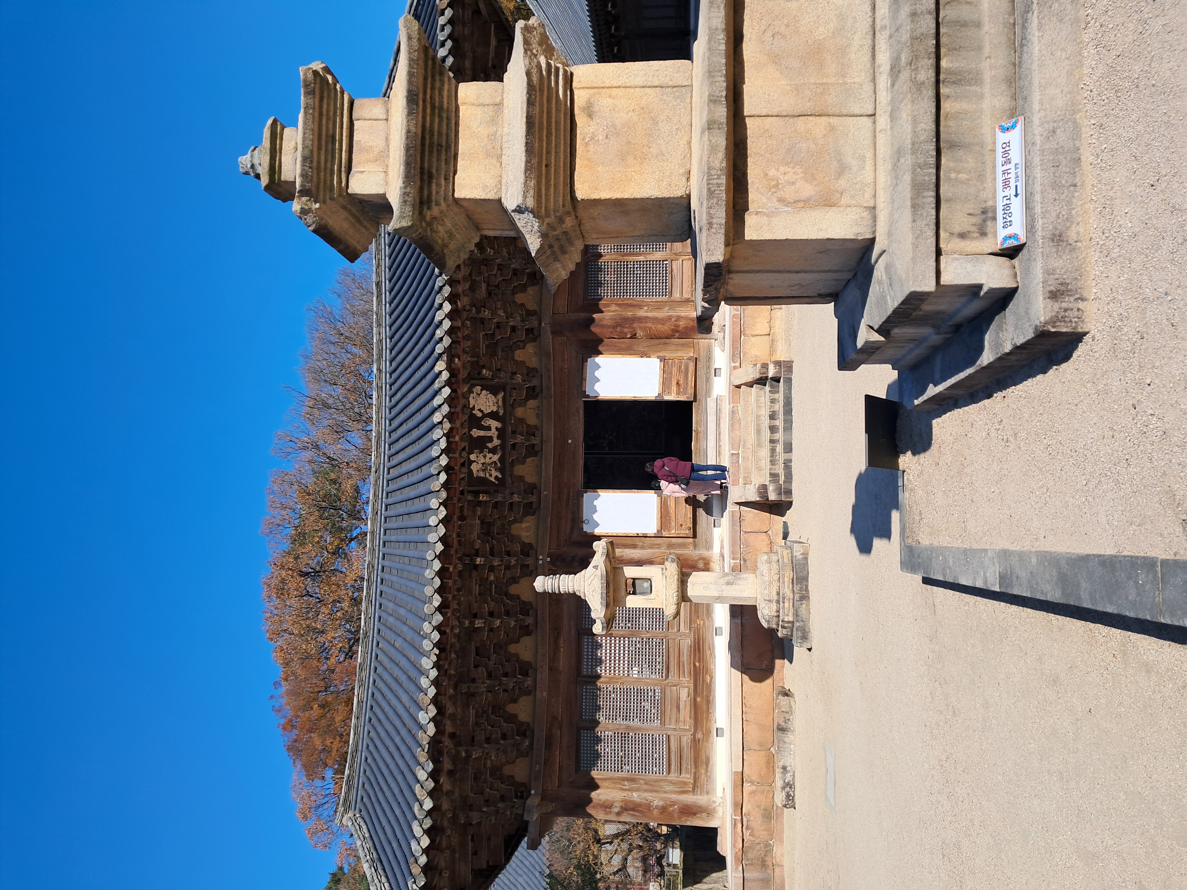 통도사 입구에 주차를 하고, 사찰로 천천히 걸어갑니다. 엄청난 규모의 대형 사찰 입니다. 입구에 길게 이어진 넓은 소나무 숲길이 인상적 입니다. 잘 정비된 길이 가을의 시간을 풍부하게 전해 줍니다. 주중 이지만 많은 사람들이 사찰을 찾고 있습니다. 등산객 보다는 절을 찾는 사람들이 대부분 입니다.