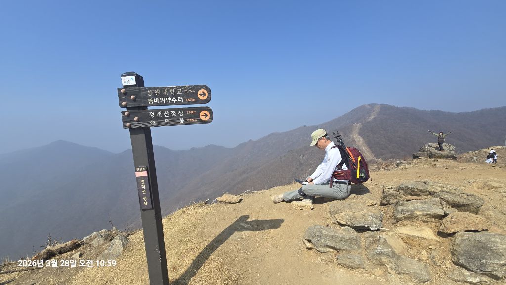 - 2026년 3월 28일(토) 한토산행. 산수유마을 주차장-육괴정-낙수재폭포-원적산-천덕봉-영원사-산수유마을 주차장 환종주 코스. 사행거리11.5km . 산행시간 3시간 40분 소요.